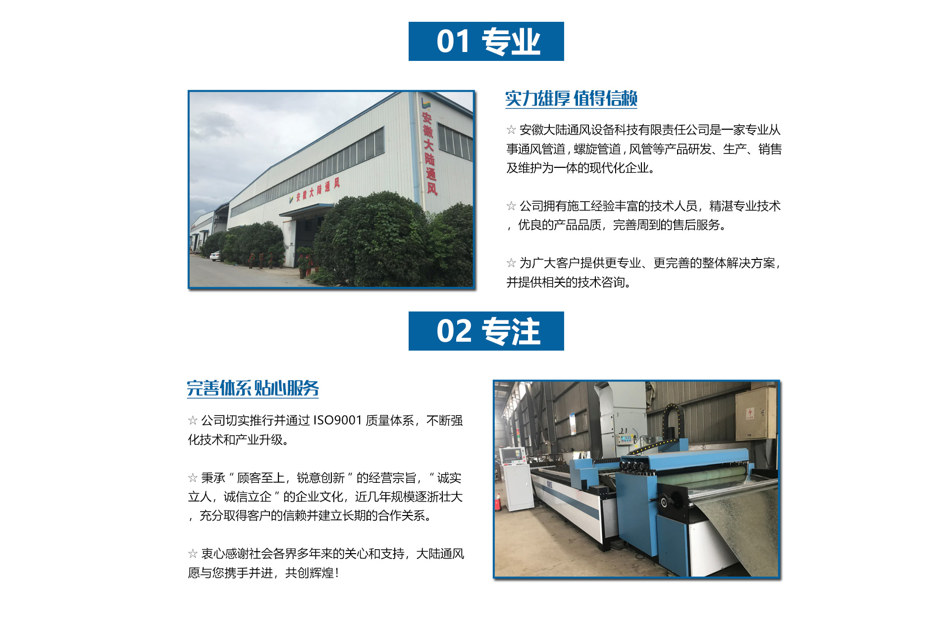 安徽大陸通風(fēng)設(shè)備科技有限責(zé)任公司加工共板法蘭風(fēng)管、螺旋風(fēng)管、角鐵法蘭風(fēng)管、插接式風(fēng)管。價(jià)格合理。質(zhì)量保障。是國(guó)內(nèi)生產(chǎn)和研究通風(fēng)管道的企業(yè),工廠坐落于經(jīng)濟(jì)發(fā)達(dá)的安徽省合肥市。公司配備了好的自動(dòng)化流水線設(shè)備和先進(jìn)的制作安裝技術(shù)。